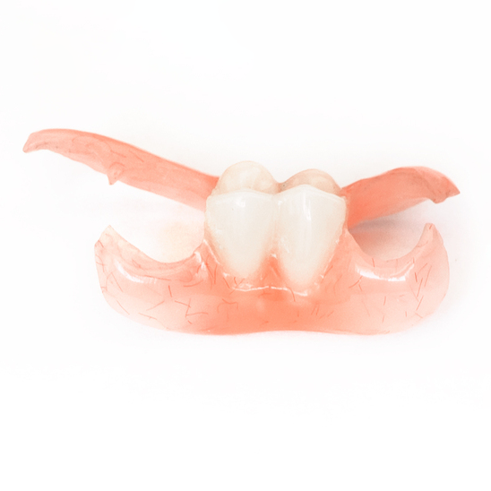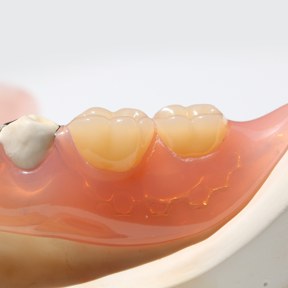 金属のクラスプ(入れ歯の留め具)を使用しない部分入れ歯です。入れ歯と気づかれにくく、自然な見た目を実現できます。弾性のある素材で、残った歯への負担が少ないのも特徴です。