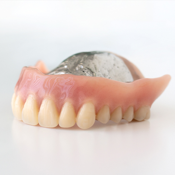 金属床義歯は、入れ歯の土台となる床(しょう:歯茎に接する部分)が金属でできている入れ歯です。床が薄いため装着時の違和感が少なく、食べ物の温度を感じやすい特徴があります。自然で快適な装着感が得られ、耐久性があるのもメリットです。