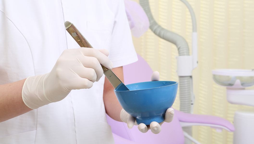 あごの形や頬の動きを確認し、入れ歯をつくるための「型取り」を行います。