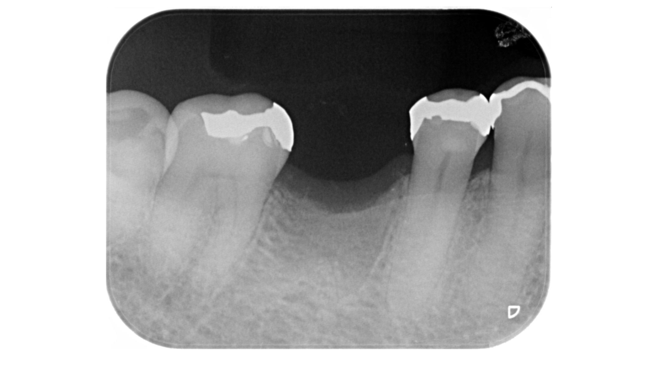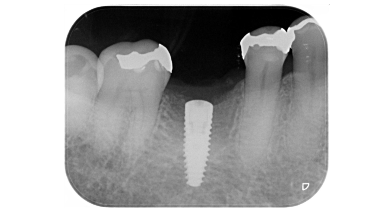右下奥歯が噛むと痛くなり、来院されました。レントゲンで歯の根が破折しており、抜歯となりました。抜歯後にインプラント治療を希望され治療を開始。治療後、違和感もなく奥歯で何でも食べれるようになったと満足されていました。