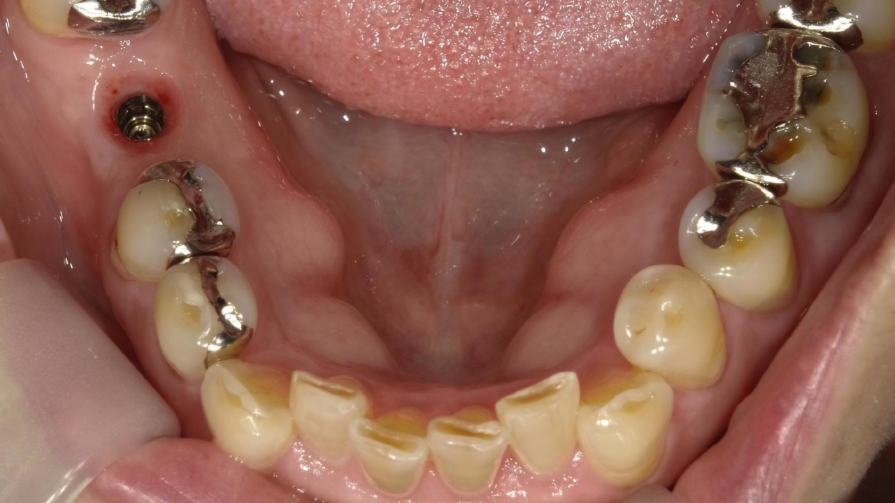 以前から左下奥歯がなく硬いものが噛めず、かみ合わせが不安定なため、欠損部にインプラント治療を希望され、治療を開始。治療後、奥歯でしっかり噛めるようになり、食事も美味しく食べれるようになったと満足されていました。